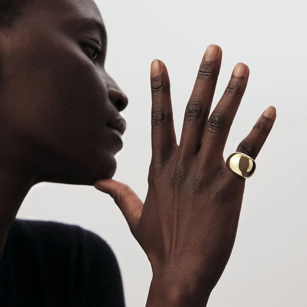 Bague boule large en laiton dorĂ© Ă l’or 750/1000. .