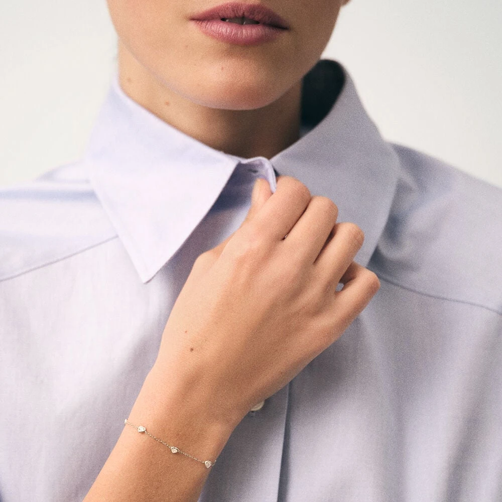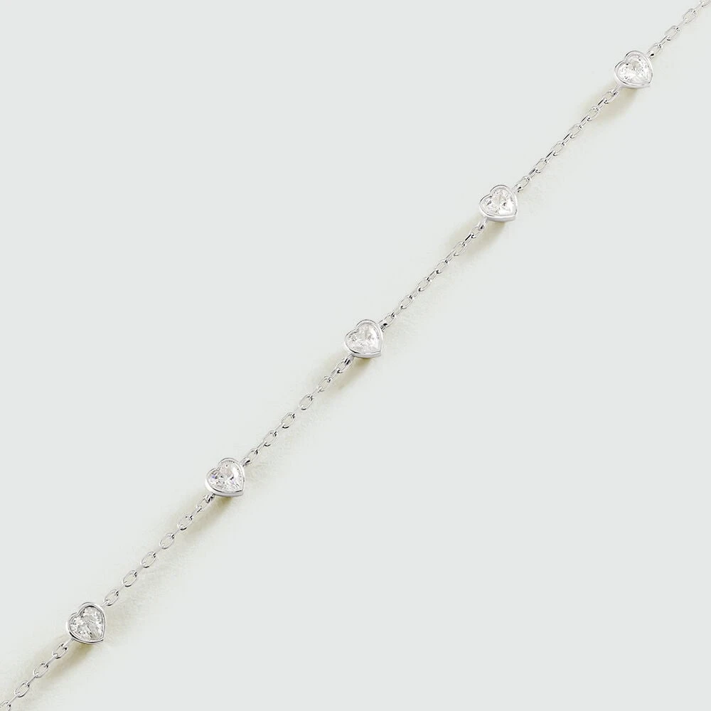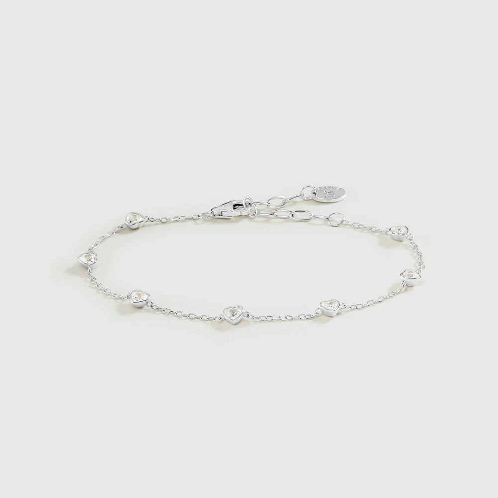 Bracelet en argent 925/1000 serti d’une multitude d’oxydes de zirconium en forme de cœur .