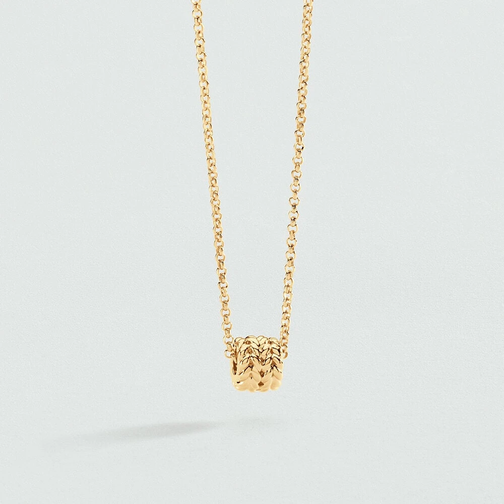 Collier en laiton doré à l’or fin monté d’un pendentif donut torsadé.