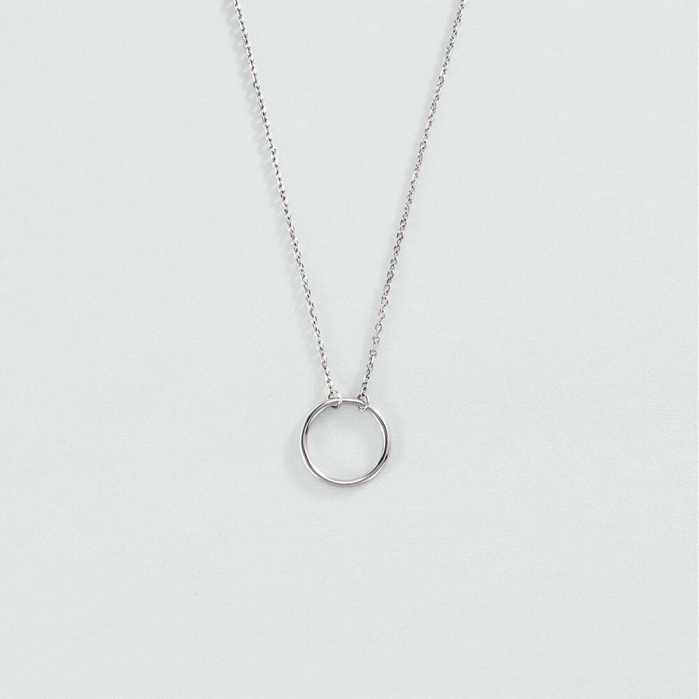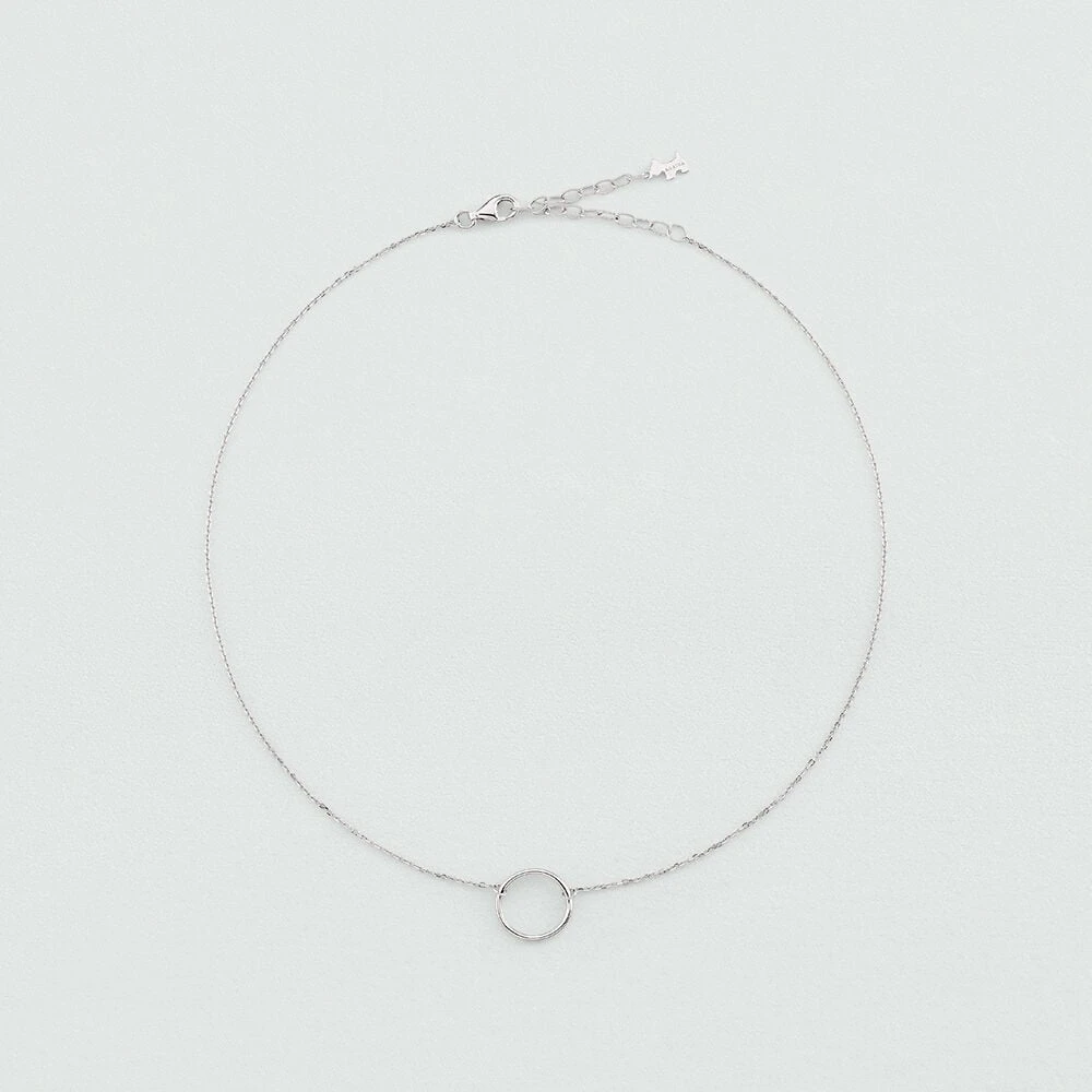 Collier court, en argent véritable, avec un anneau évidé monté sur une chaine fine.