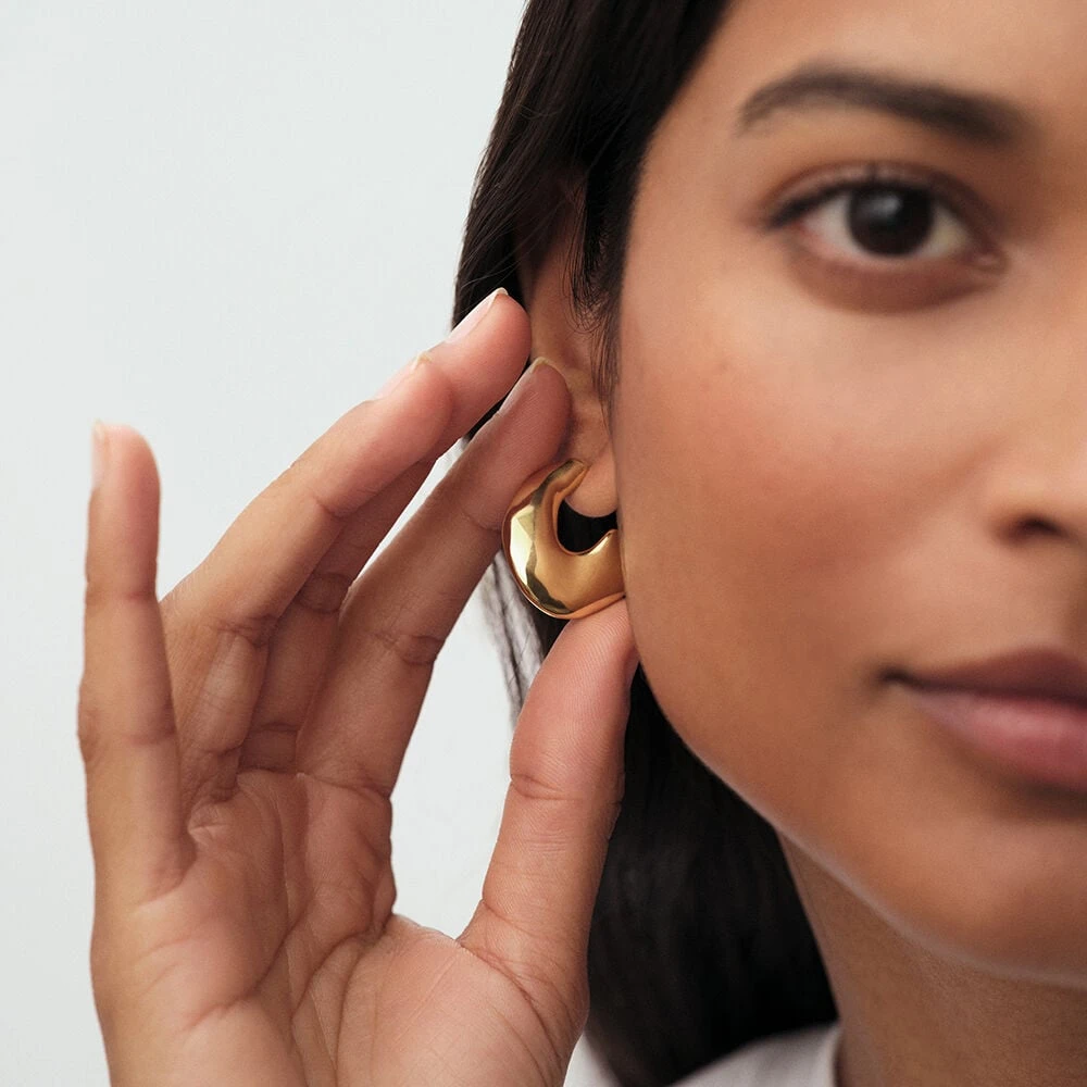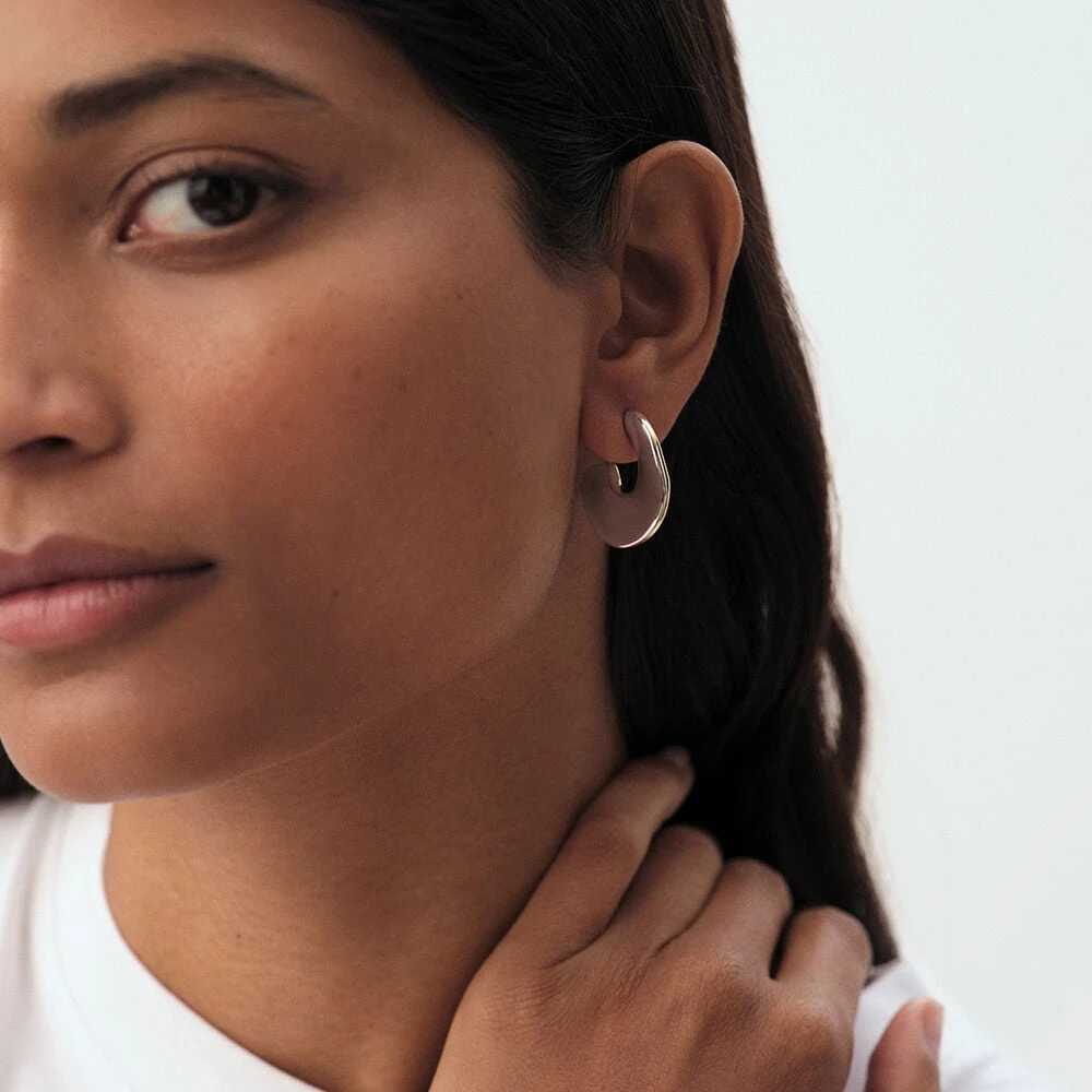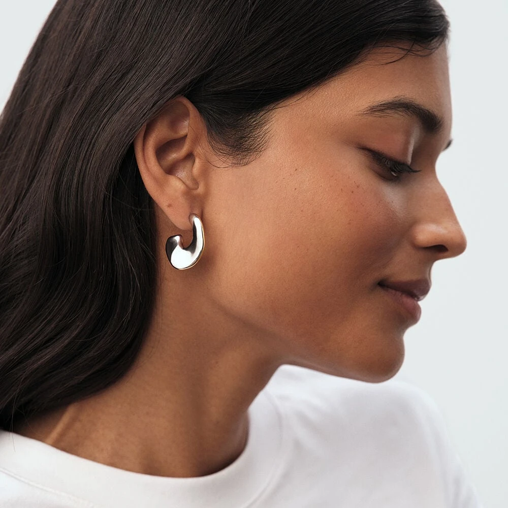 Créoles organique 2-en-1 en laiton bicolore doré et rhodié. Grâce à leur design réversible, elles s’accordent à toutes vos tenues.