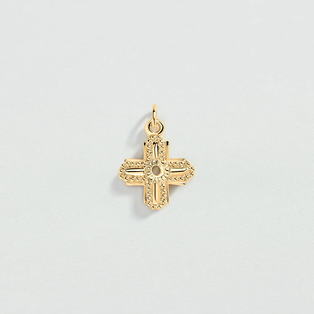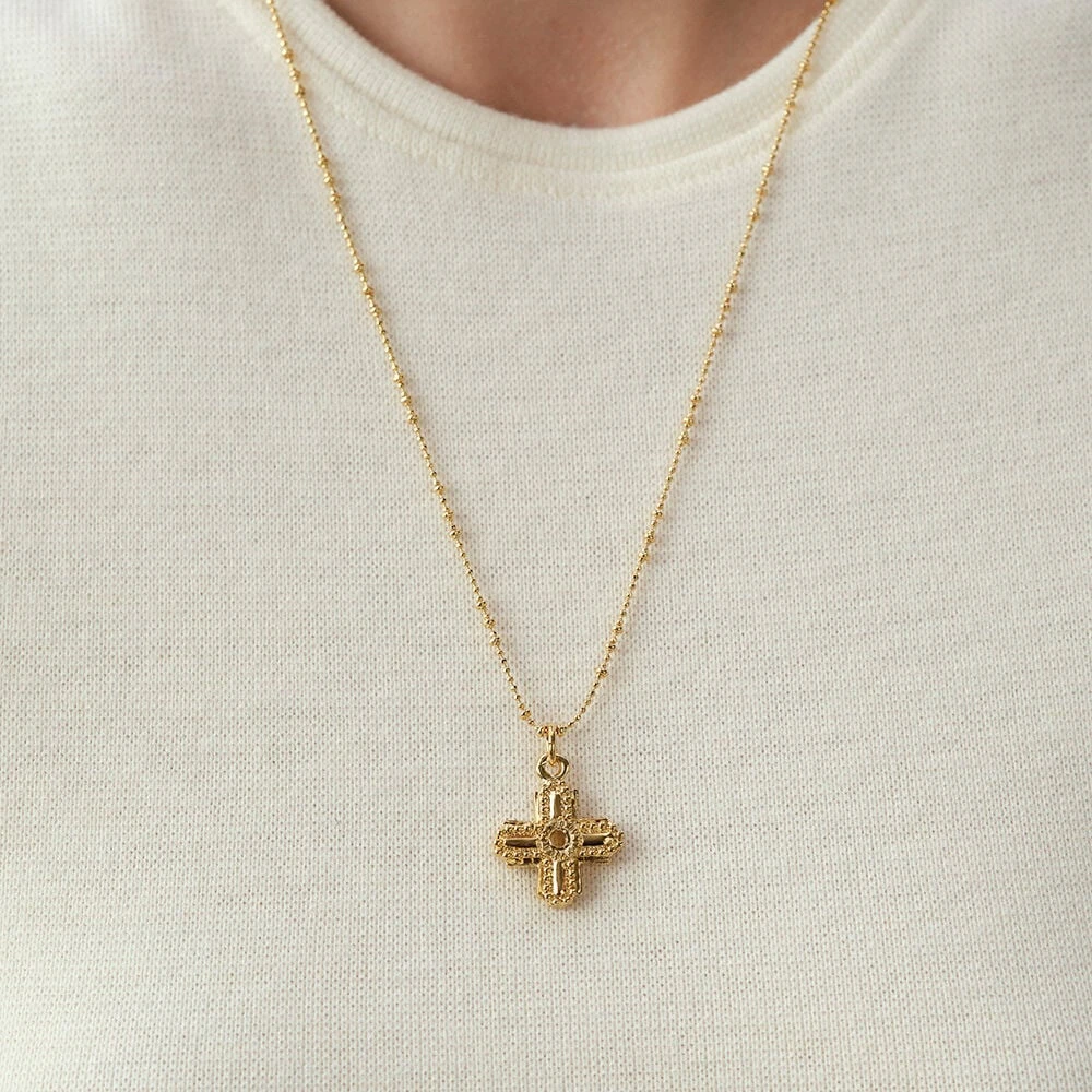 Pendentif en mĂ©tal dorĂ© Ă l’or fin en forme de croix.
